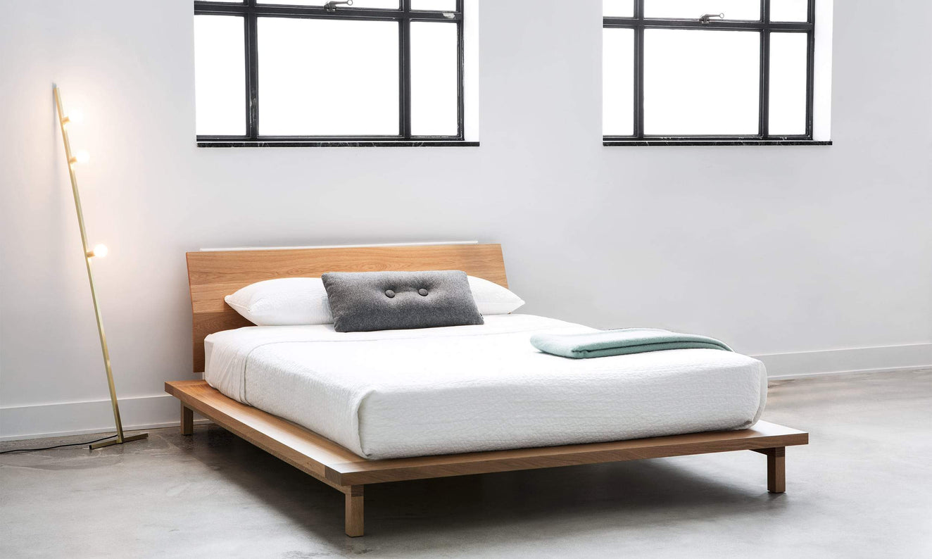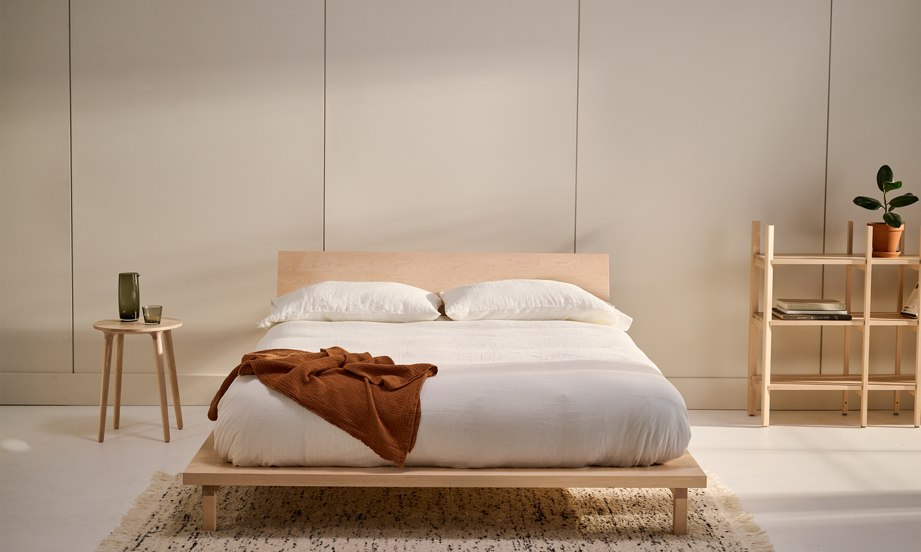 Le lit plate-forme B101 est l'une de nos créations originales. Le cadre à profil bas et la base généreuse offrent un design moderne et élégant, tandis que la tête de lit inclinée offre un confort supplémentaire pour la lecture au lit.