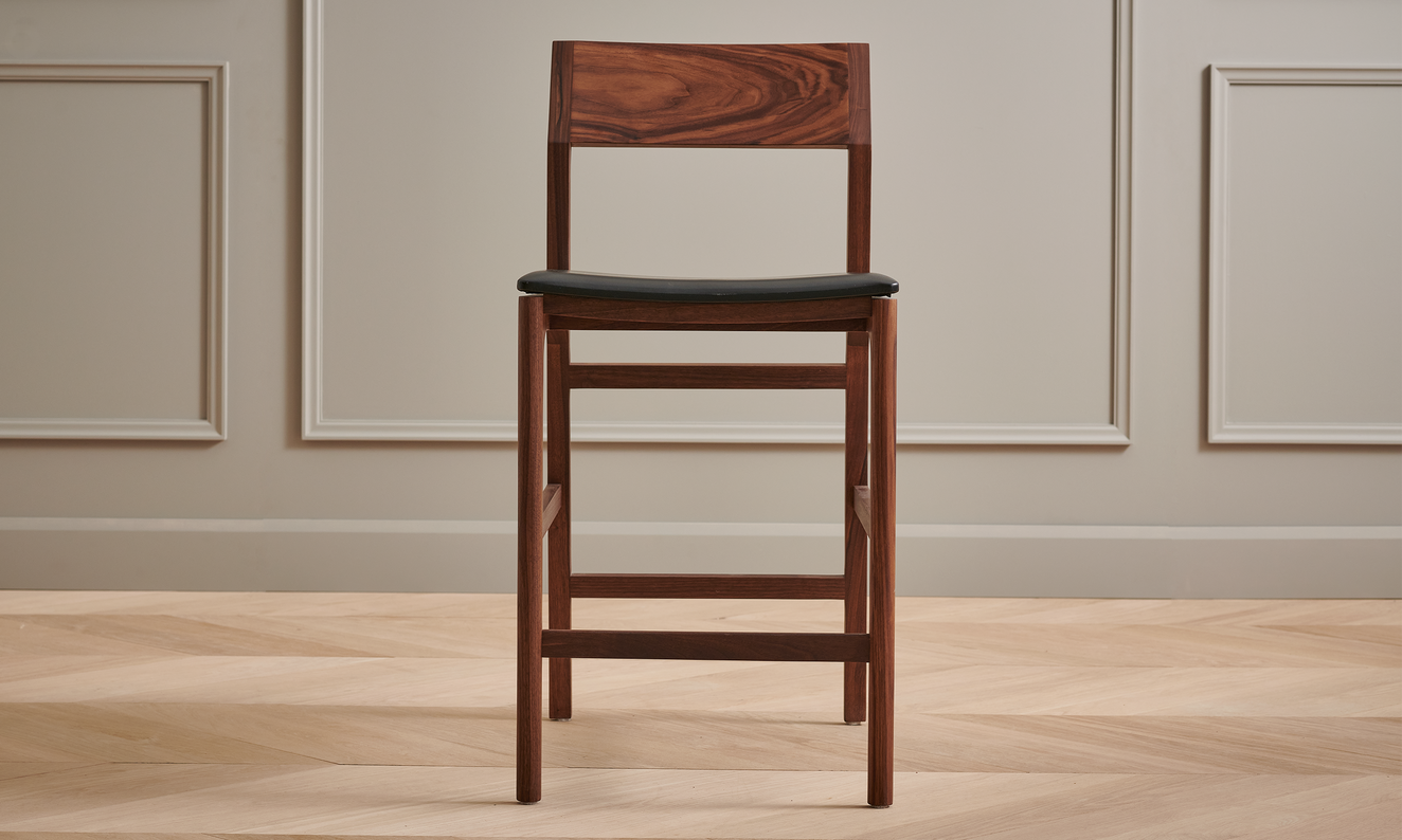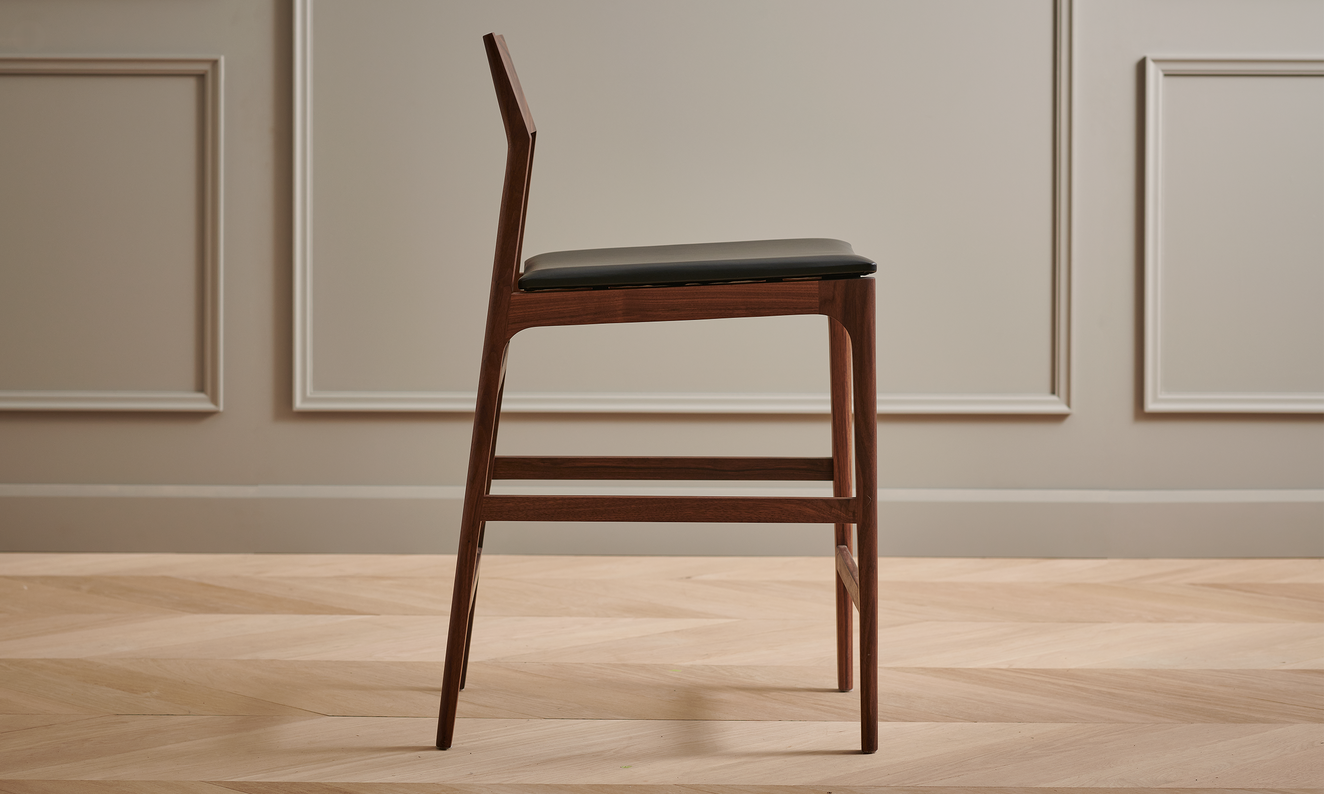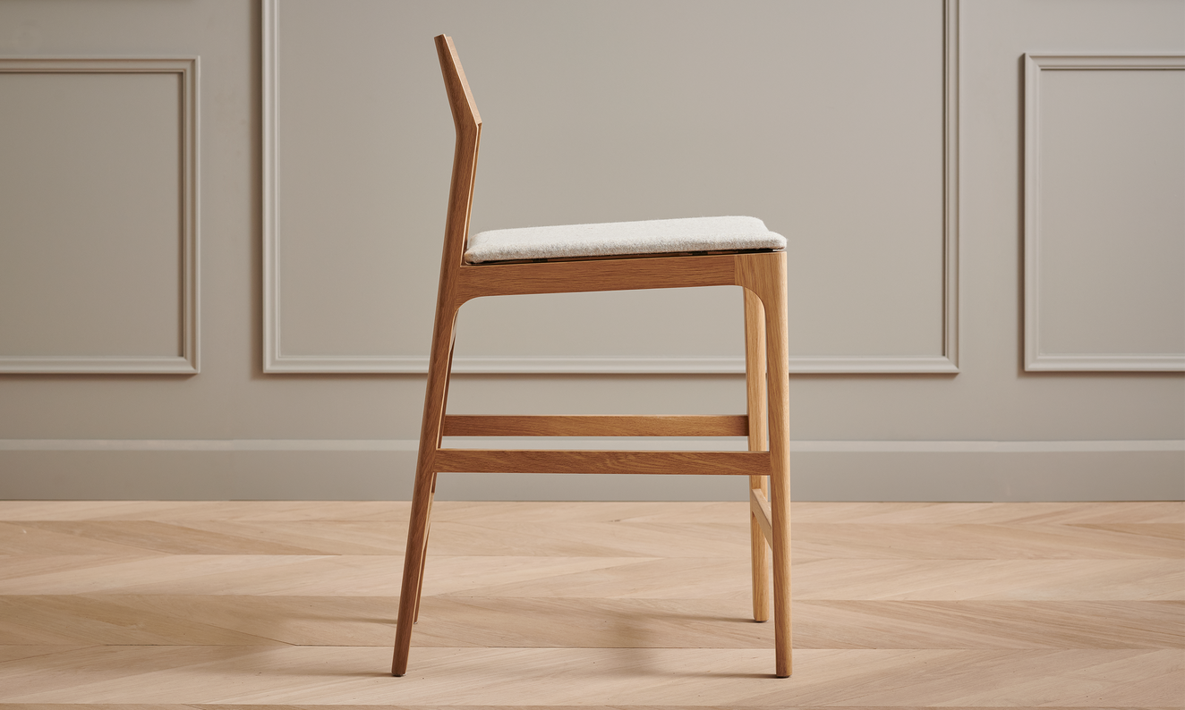 Inspiré de notre collection de chaises, le C402 est un tabouret fabriqué à la main avec une assise rembourré et un dossier incliné. Le cadre en bois massif est soutenu par 4 traverses horizontales, ce qui lui confère une solidité supplémentaire tout en conservant les proportions délicates du C205 original.