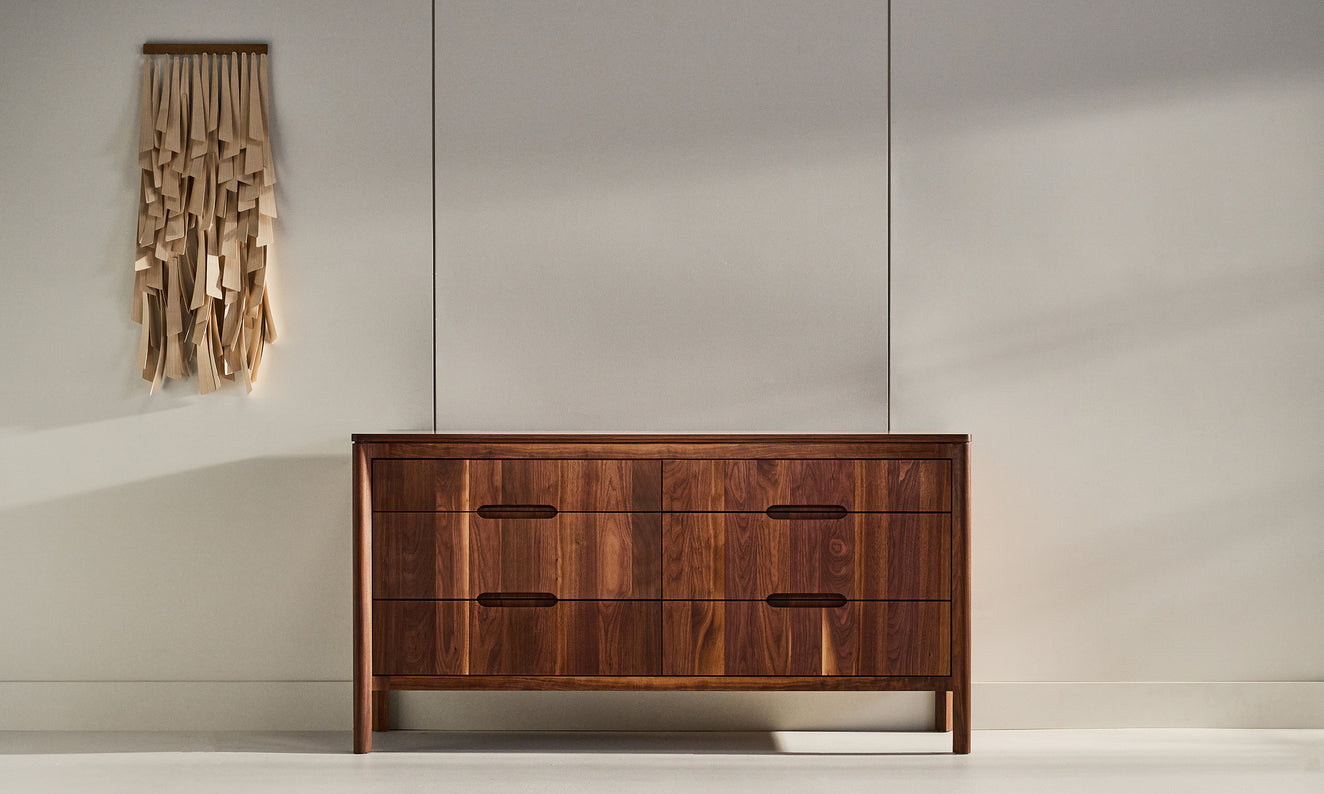 Elégante et pratique, la commode S109 comporte trois à six tiroirs à queue d'aronde avec des poignées encastrées qui conservent l'esthétique générale de la collection.